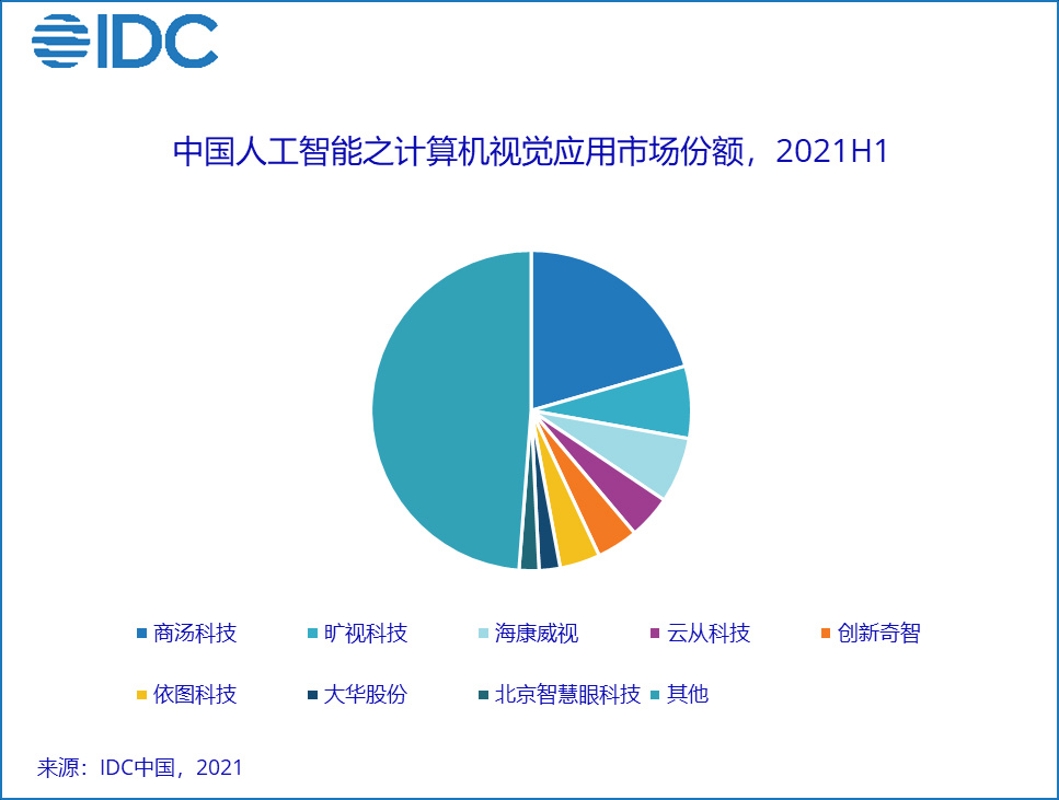 计算机视觉市场2021H1达9.9亿美元,同比增长高达33.0%。中国前五大计算机视觉厂商为商汤科技、旷视科技、海康威视、云从科技和创新奇智。从规模上看,前五大厂商已经能够跻身世界领先行列。其中增速比较明显的企业包括创新奇智、商汤科技、海康威视等,均为正在IPO中的企业或者传统IT巨头级厂商。