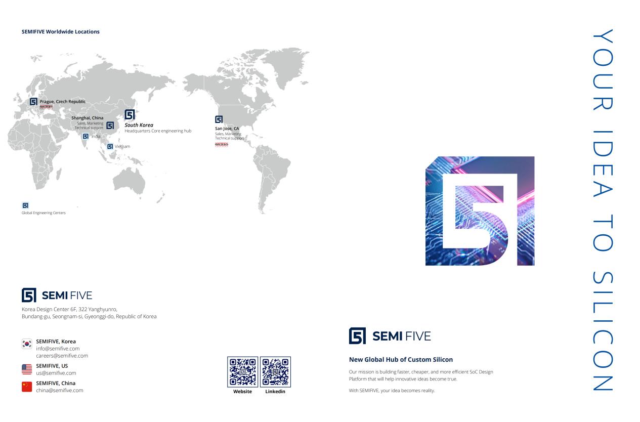 SEMIFIVE, hand in hand with global innovation leaders, is growing as a leading partner for future SoC designs, and thereby becoming: The New Global Hub of Custom Silicon.