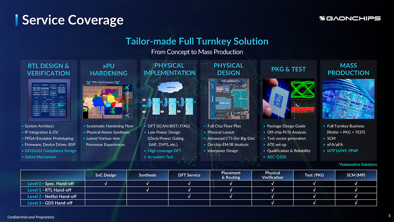 가온칩스는 AI/HPC, Automotive 등 다양한 시스템 반도체 응용 분야에서 180nm부터 최선단 2nm 공정에 이르기까지 폭넓은 경험과 기술력을 보유하고 있습니다. 오랜 경험을 통해 축적된 전문성과 혁신적인 기술력을 바탕으로, 고객의 요구에 최적화된 맞춤형 솔루션을 제공합니다.